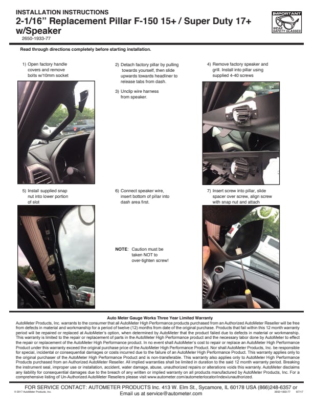 - For Use w/2-1/16 in. Auto Meter Gauges