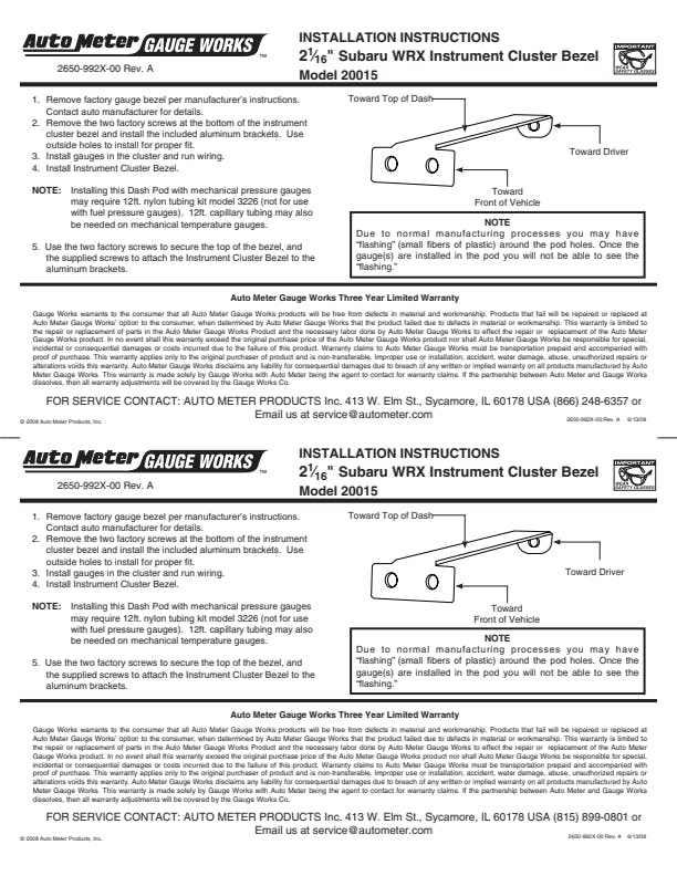 - For Use w/2-1/16 in. AutoMeter Gauges