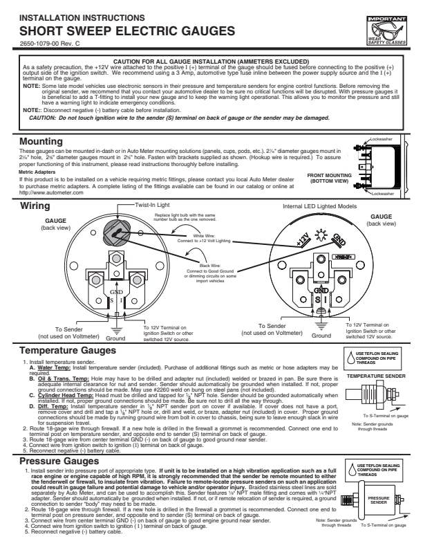 - Incl. Oil Pressure Sender; Water Temp Sender