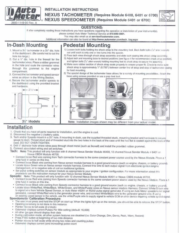 - Includes 3 3/8 in. Sport-Comp Electric Speedometer And Tachometer