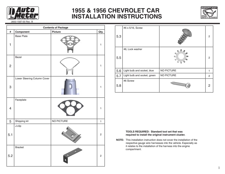 Direct Fit replacement for 55-56 Chevy cars. Fits one 3-3/8 in. gauge and four 2-1/16 in. gauges. Features hidden turn signals and high beam indicators.