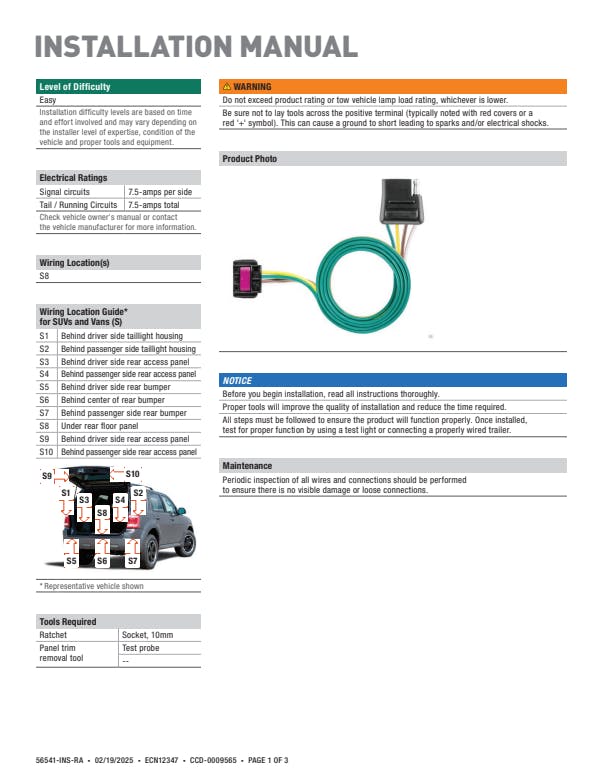 - Plugs into existing OEM vehicle socket to provide a 4-way flat socket