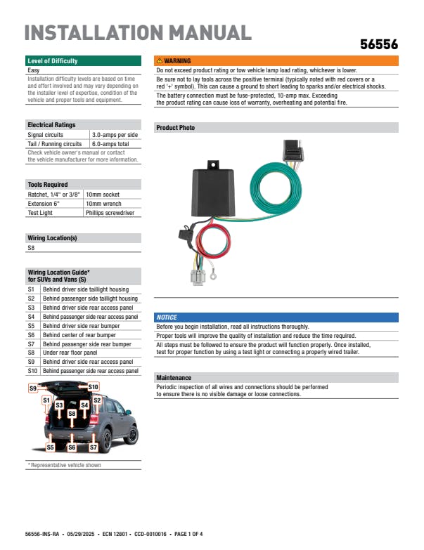 - Equipped with tail light converter for vehicle-trailer compatibility