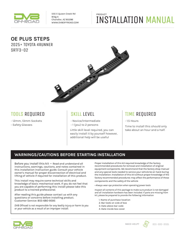 The 2025 Toyota 4Runner OE Plus Side Steps provide a secure, functional step without reducing ground clearance. Featuring an anti-slip grip surface for safe entry and exit, they also protect against light debris like branches and small rocks. Built from durable steel with a sleek micro-texture black powder coat finish, these steps combine strength, style, and everyday practicality