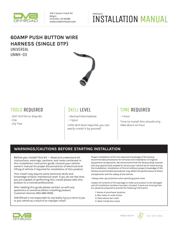 | Installation Time (hrs) | 1 hr |